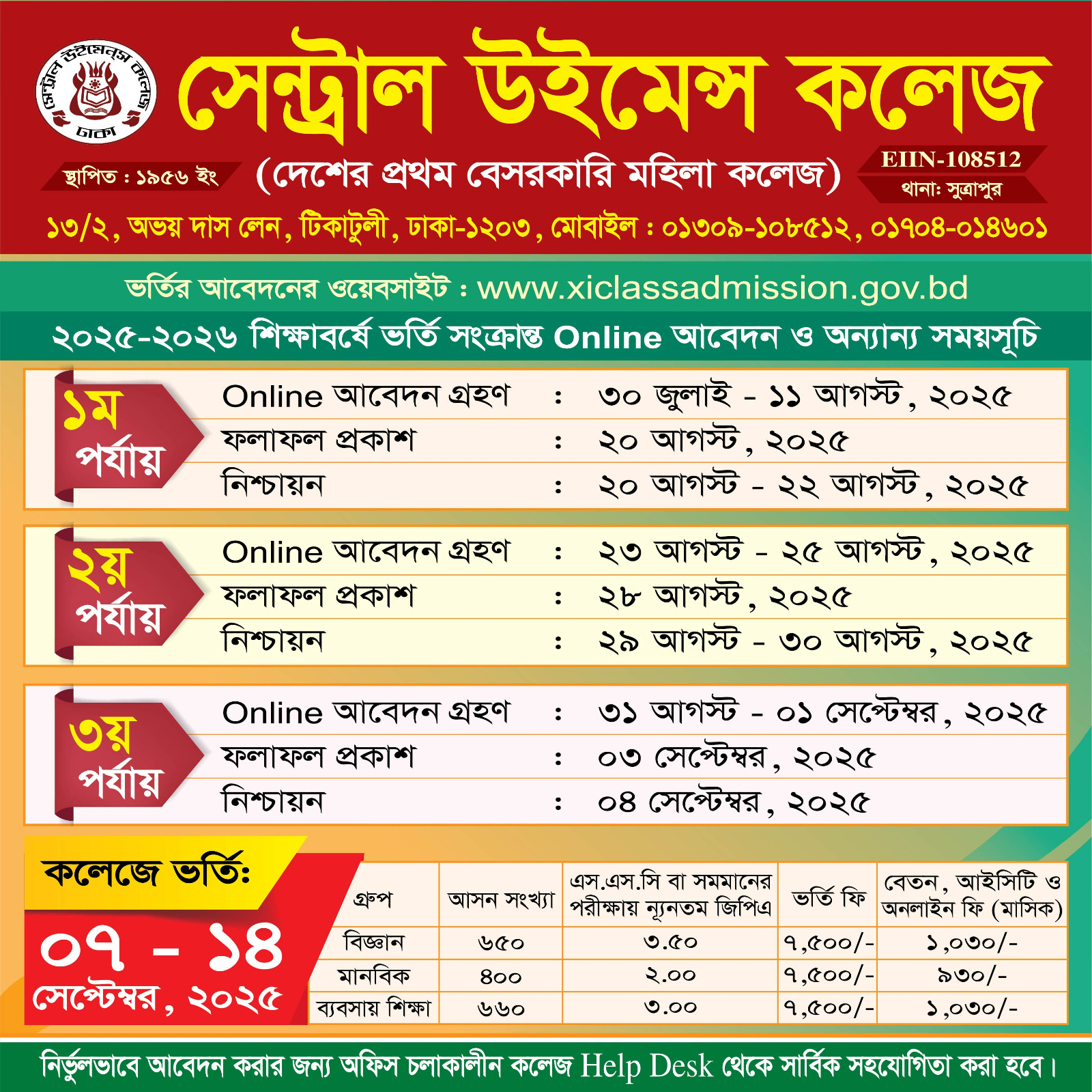 Central Women's College | First private women's college in Bangladesh College Code: 1753(DB), 6443(NU) | EIIN:108512